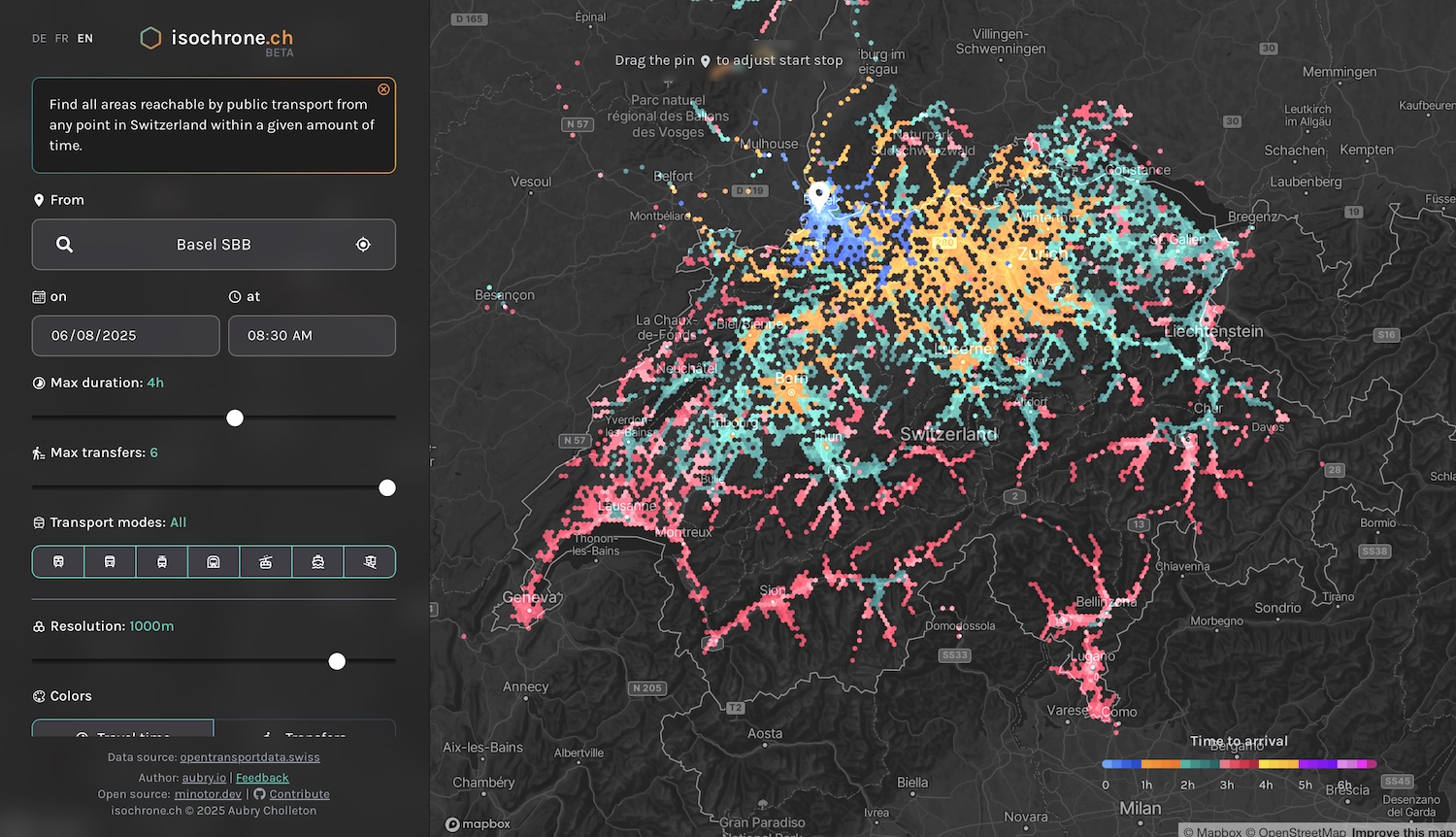 The tool uses data from opentransportdata.swiss which is part of the so-called “Mobility Data Infrastructure” (MODI).