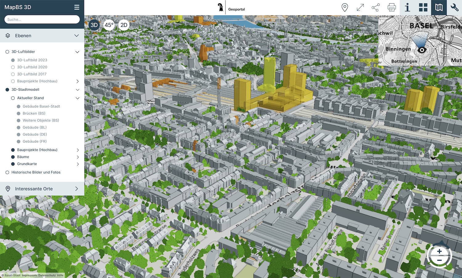 In its latest newsletter edition, the canton of Basel-Stadt announces the successful conclusion of the “3D Geoportal” project. The most notable outcome of the project is MapBS 3D1.
