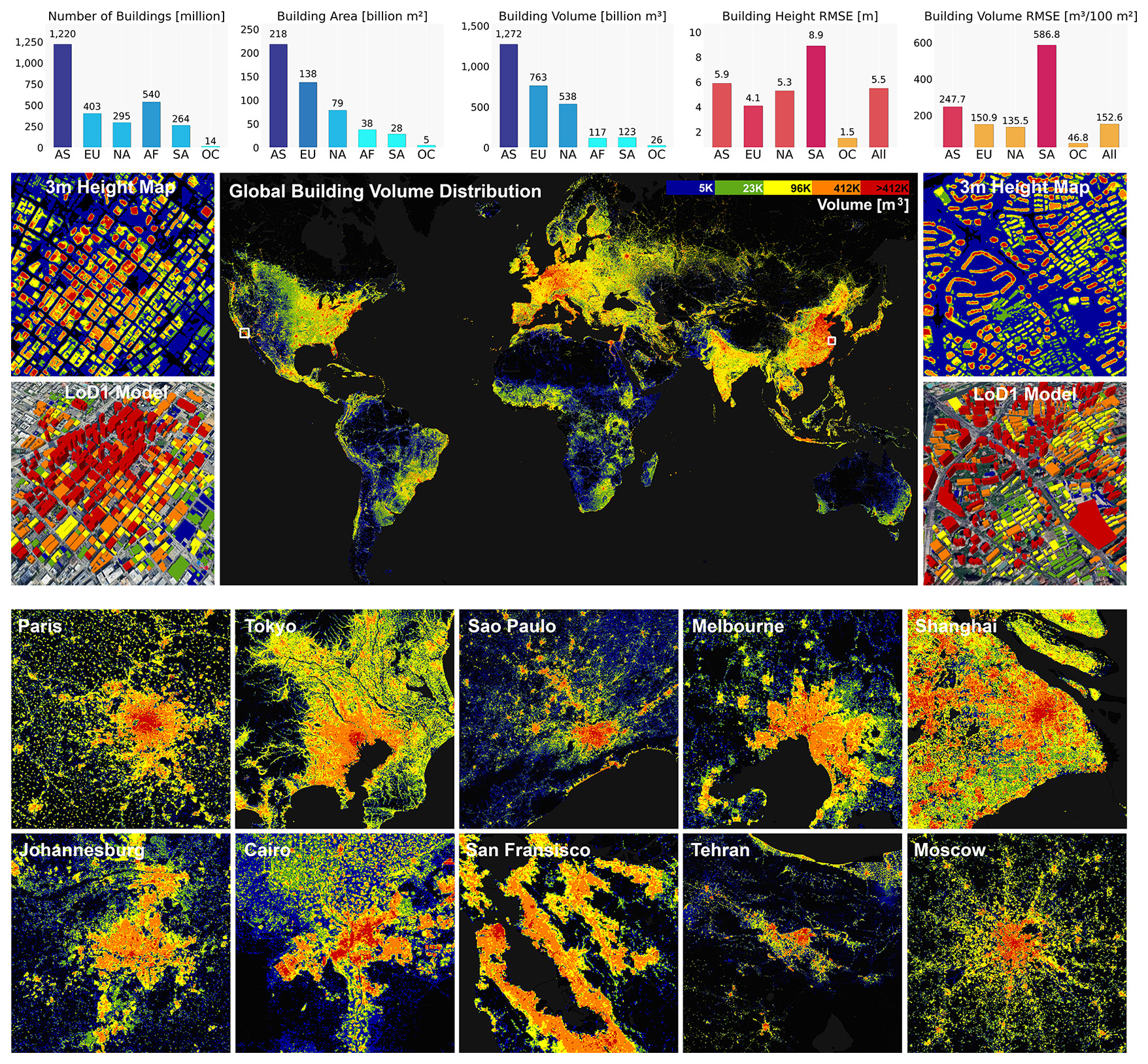 A research team from TUM1 led by Prof. Xiao Xiang Zhu has published a 3D dataset comprising 2.8 billion buildings world-wide. From the announcement: